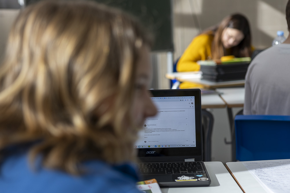 Los estudiantes utilizan tablets, Chromebooks u otros dispositivos digitales seleccionados por la institución educativa como herramientas complementarias para respaldar el proceso de enseñanza y aprendizaje, junto con los libros de texto.