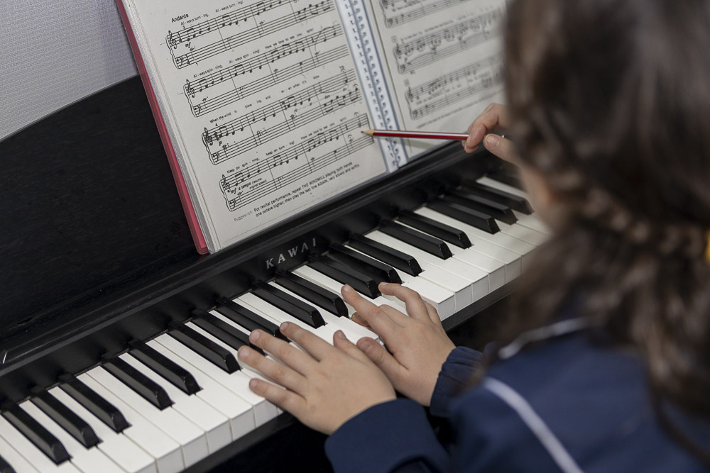 A partir de Educación Primaria, nuestras alumnas/os se adentran en el mundo musical, tanto a nivel teórico como práctico, con el aprendizaje de diversos instrumentos como: la flauta dulce, la guitarra y el piano, ya que la expresión musical genera una serie de beneficios y estimula todas las facultades del ser humano: abstracción razonamiento lógico-matemático, memoria, orden y comunicación, entre otras. Además tiene la capacidad de sensibilizar a las personas, permitiendo que todos los niños disfruten de ella.